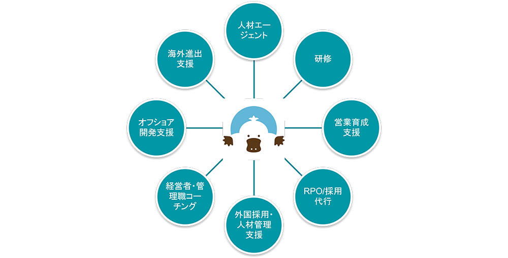 人材紹介や採用代行に加えて、研修やコーチング、外国人材の定着支援、海外進出まで幅広く対応しています。